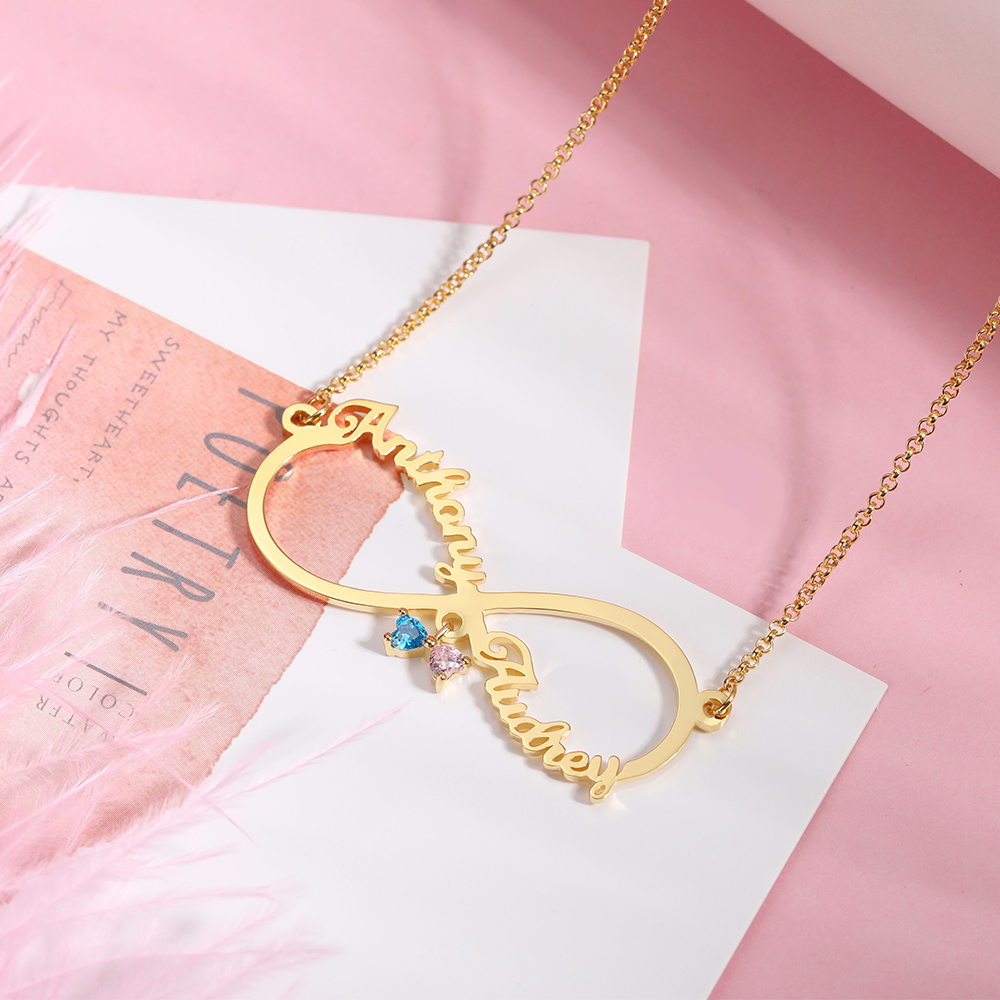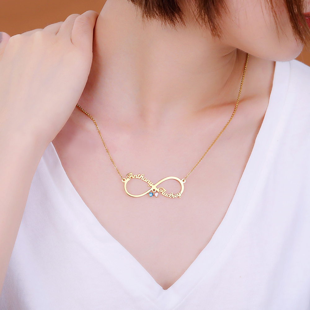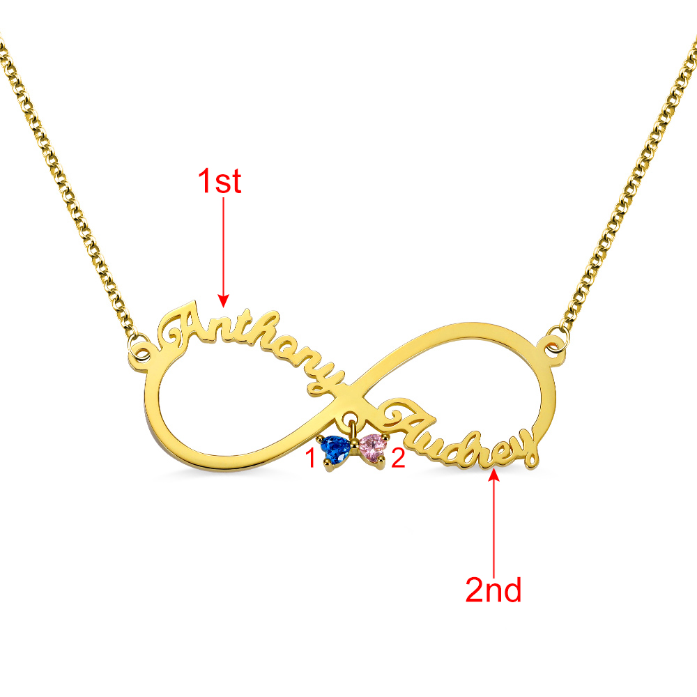 Collier personnalisé Infinity 2 prénoms avec pierre de naissance en or