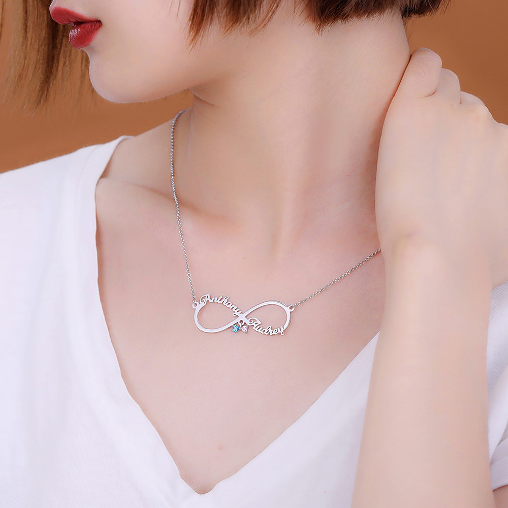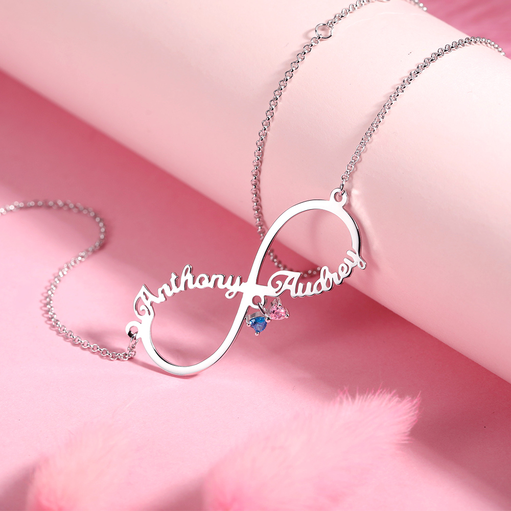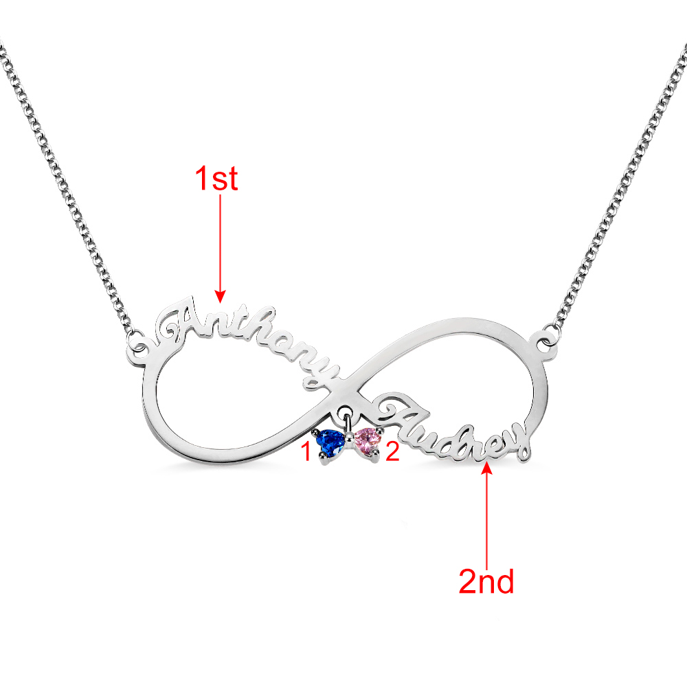 Collier personnalisé Infinity 2 prénoms avec pierre de naissance en argent sterling